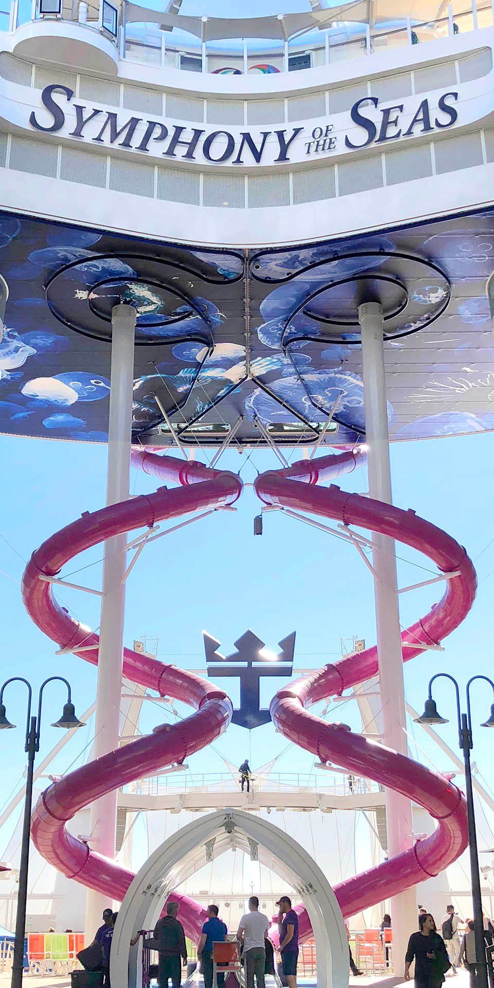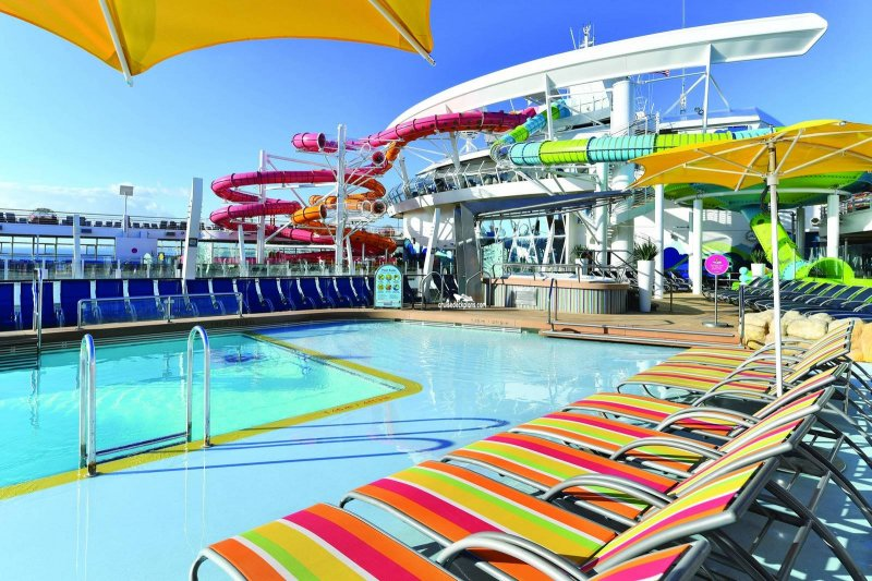 This ship is similar to Symphony of the Seas, but slightly smaller. It features a 10-story slide, a zipline, two FlowRider surf simulators, and a mini-golf course. There's also a pool area with a kids' water park and a "beach pool" with a sandy bottom.